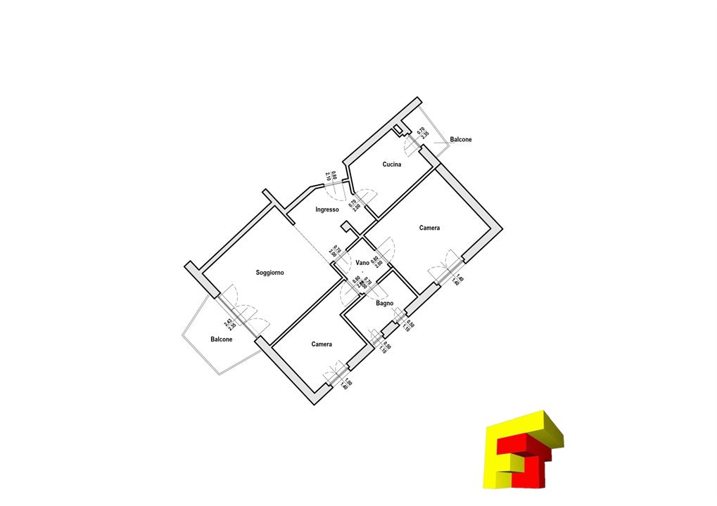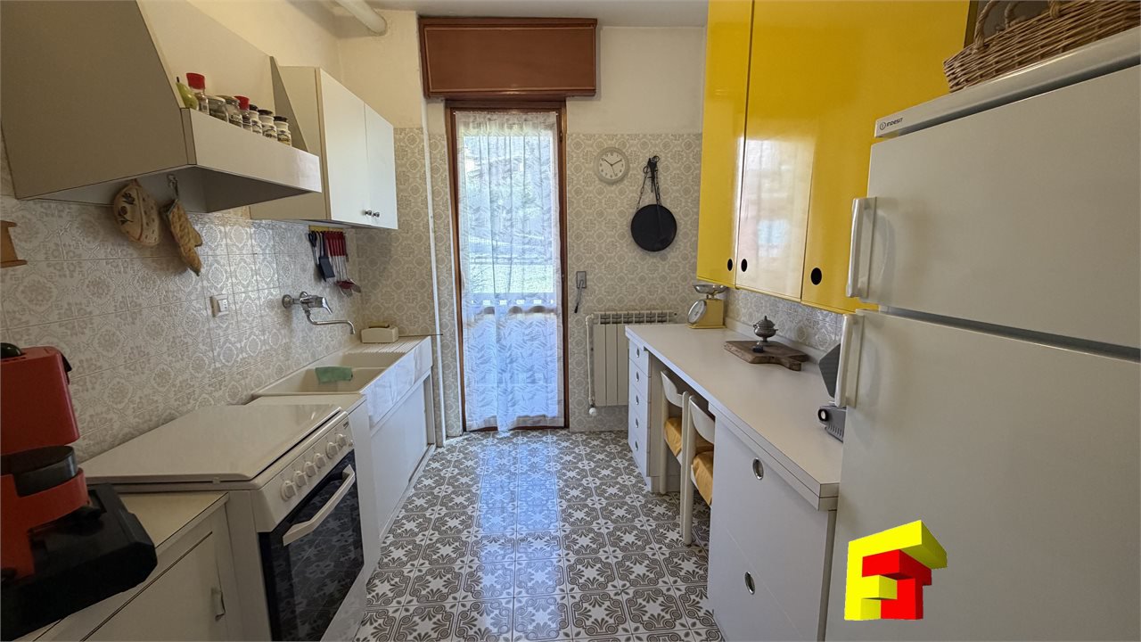 Con una superficie di 70 mq, l'appartamento dispone di 3 locali, soggiorno molto luminoso esposto a ovest con aterrazzo di circa 6 mq e caminetto a legna, cucina abitabile dotata di portafinestra e piccolo balconcino, camera matrimoniale, camera doppia e bagno finestrato.