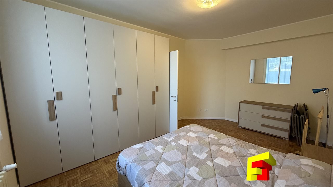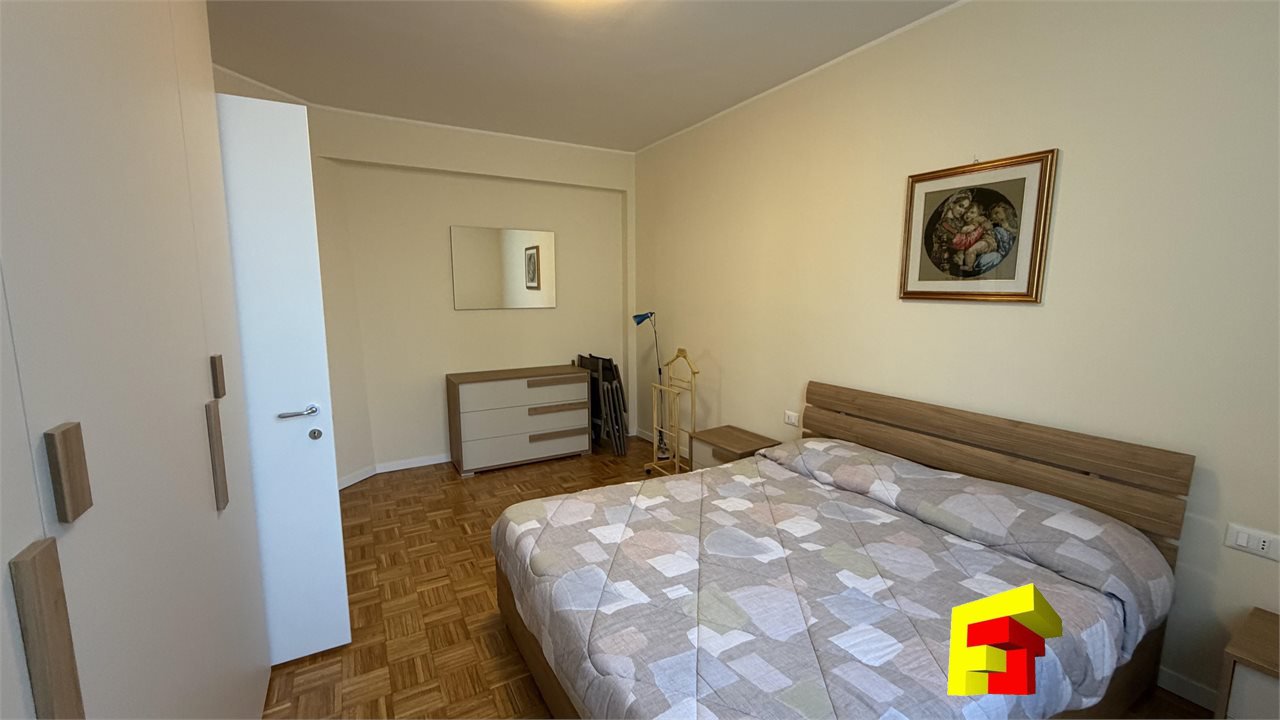 Appartamento costituito da ingresso, ampio e luminoso soggiorno con cucina a vista, divano letto matrimoniale, n. 2 portefinestre per accesso al balcone, bagno finestrato dotato di doccia, sanitari a terra,e lavatrice, camera matrimoniale di ampia metratura che consentirebbe anche il posizionamento di un letto a castello oltre al letto matrimoniale già presente.